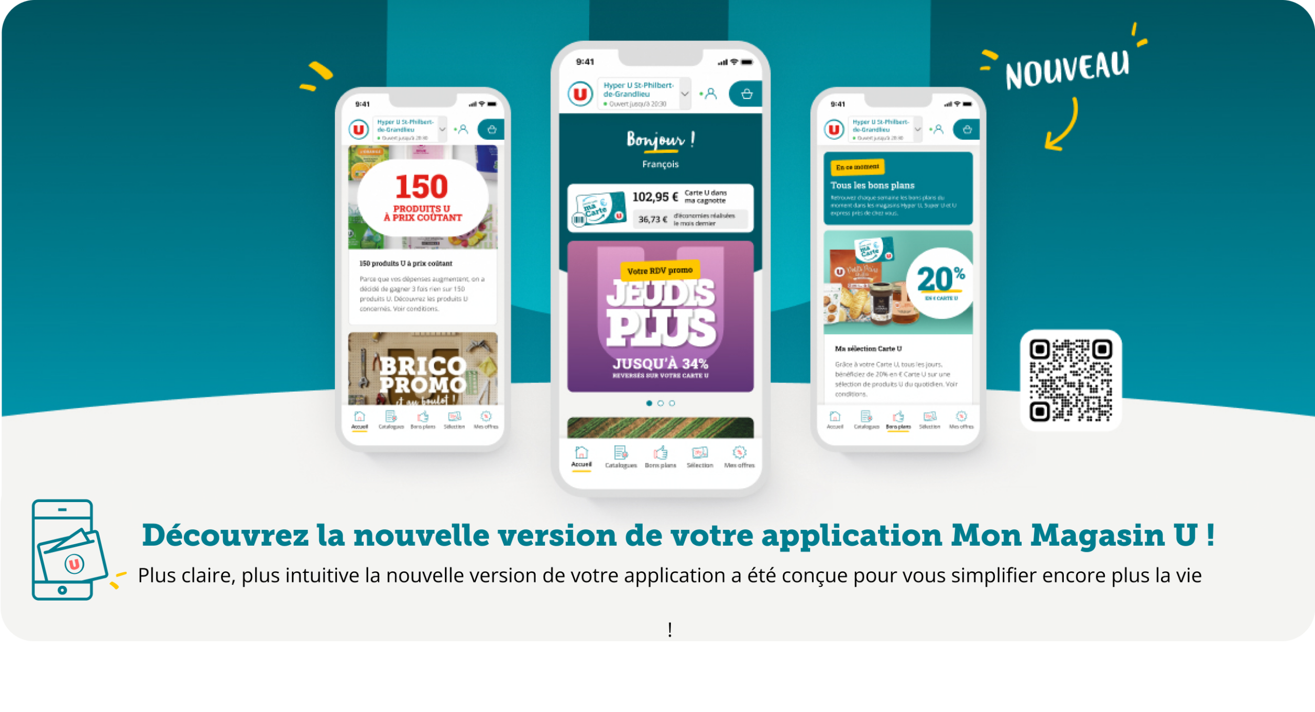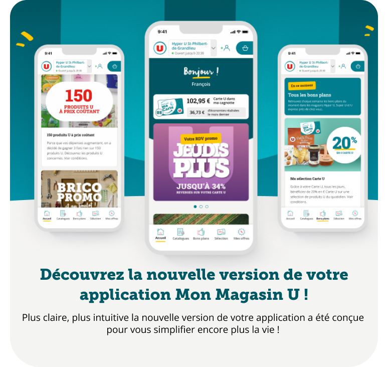 La Carte de fidélité U vous accompagne au quotidien pour vous faire bénéficier de nombreux avantages et d’offres personnalisées. Vos achats vous permettent de cumuler des € Carte U, que vous pouvez ensuite utiliser pour payer vos courses (en magasin et sur coursesu.com).